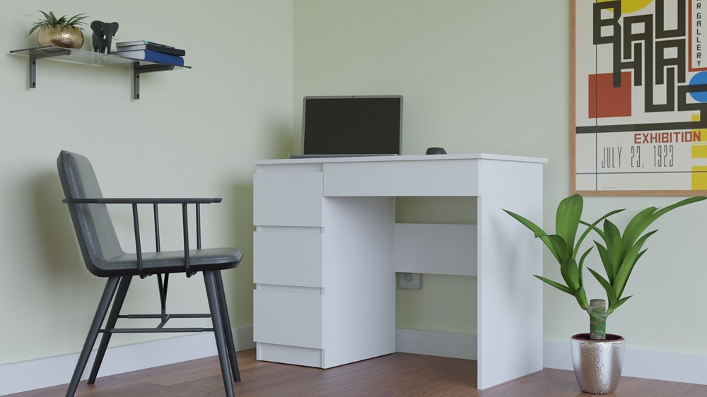 Praktyczne biurko z kolekcji DEVO to funkcjonalny i pakowny mebel, który urządzi wnętrze Twojego biura, pracowni lub pokoju