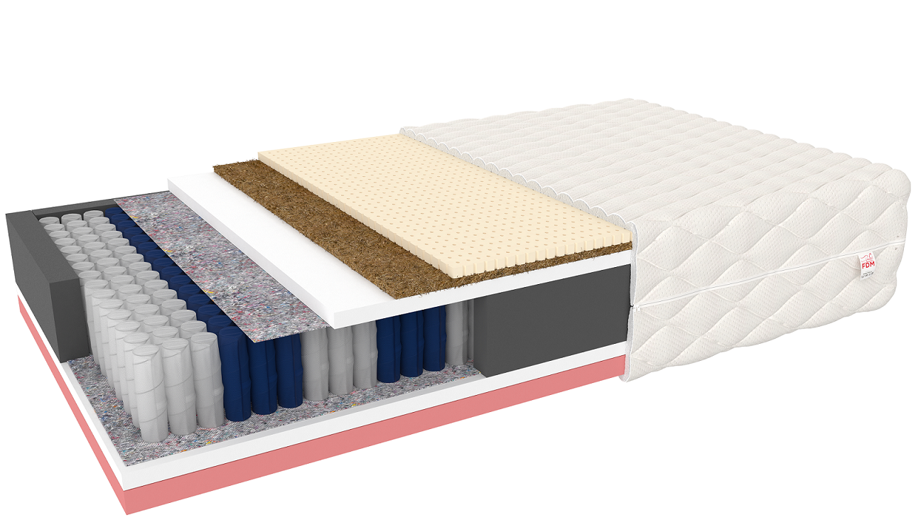 W górnej warstwie zastosowana wkładka z kokosa zapewnia zwiększoną sztywność powierzchni materaca. Połączenie lateksu na górze i pianki termoplastycznej VISCO na dole idealnie podpiera kręgosłup, zapewniając zdrowy i komfortowy sen, a także odpoczynek po ciężkim dniu.