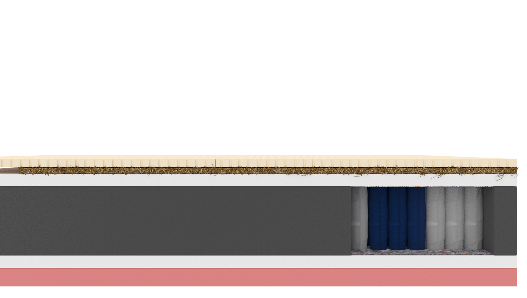 Wkład kieszeniowy składa się z kilku elementów. Otacza go pianka poliuretanowa T25, która jest optymalnie odporna na odkształcenia. Dodatkowo na górze zastosowano usztywniający wkład z kokosa, który nie tylko poprawia cyrkulację powietrza w materacu kieszeniowym SERU GRANDE, ale także posiada właściwości antyalergiczne.