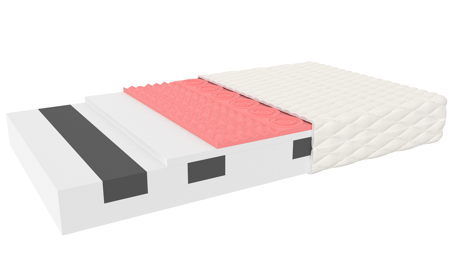 Wysoka jakość pianek zapewnia bardzo dobre podparcie dla kręgosłupa. Dodatkowo materac posiada warstwę profilowanej pianki termoplastycznej VISCO, która podzielona jest na siedem stref. Tworzywo niesamowicie reaguje na nacisk i temperaturę, przyjmując kształt sylwetki osoby leżącej.