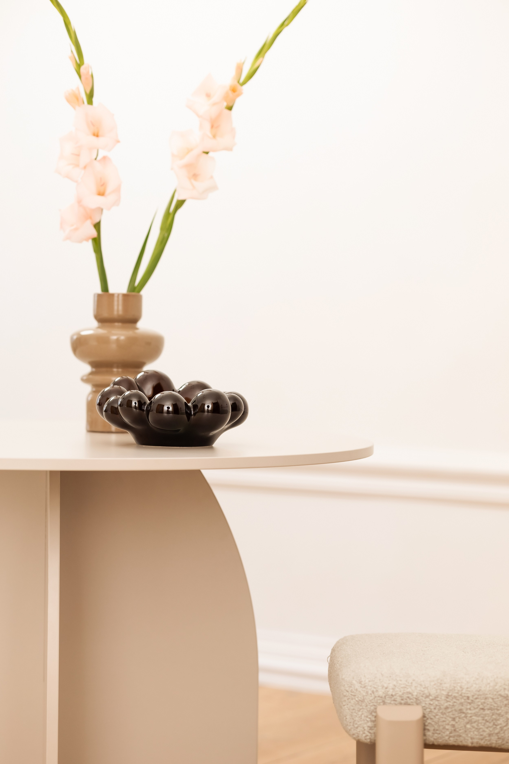 Te modny mebel posiada praktyczny kształt zachowując przy tym niebanalną formę, stanowią świetny dodatek do każdej jadalni. Stonowaną kolorystykę podkreśla beżowy odcień kaszmiru, a także jego przemyślana i harmonijna konstrukcja.