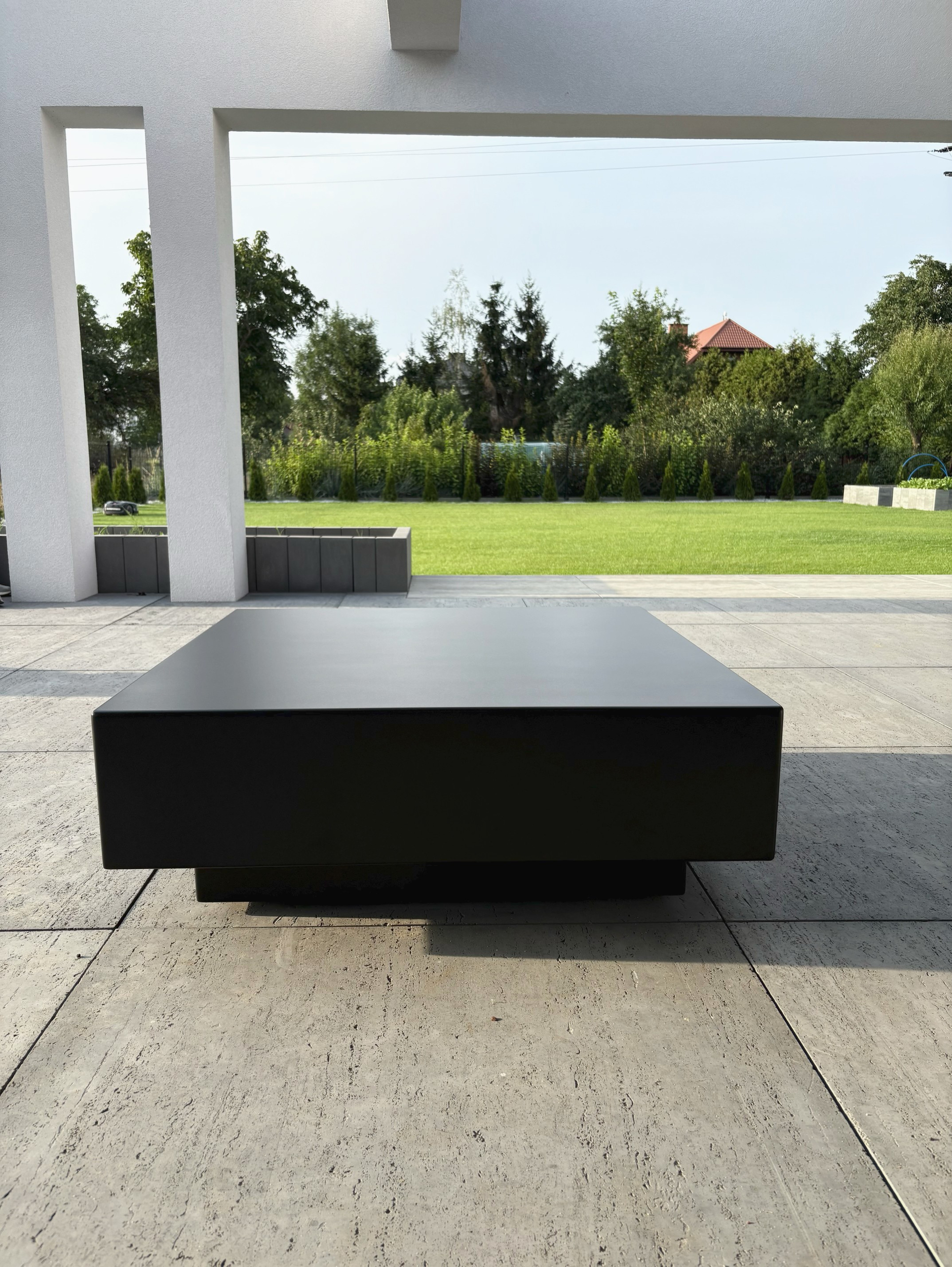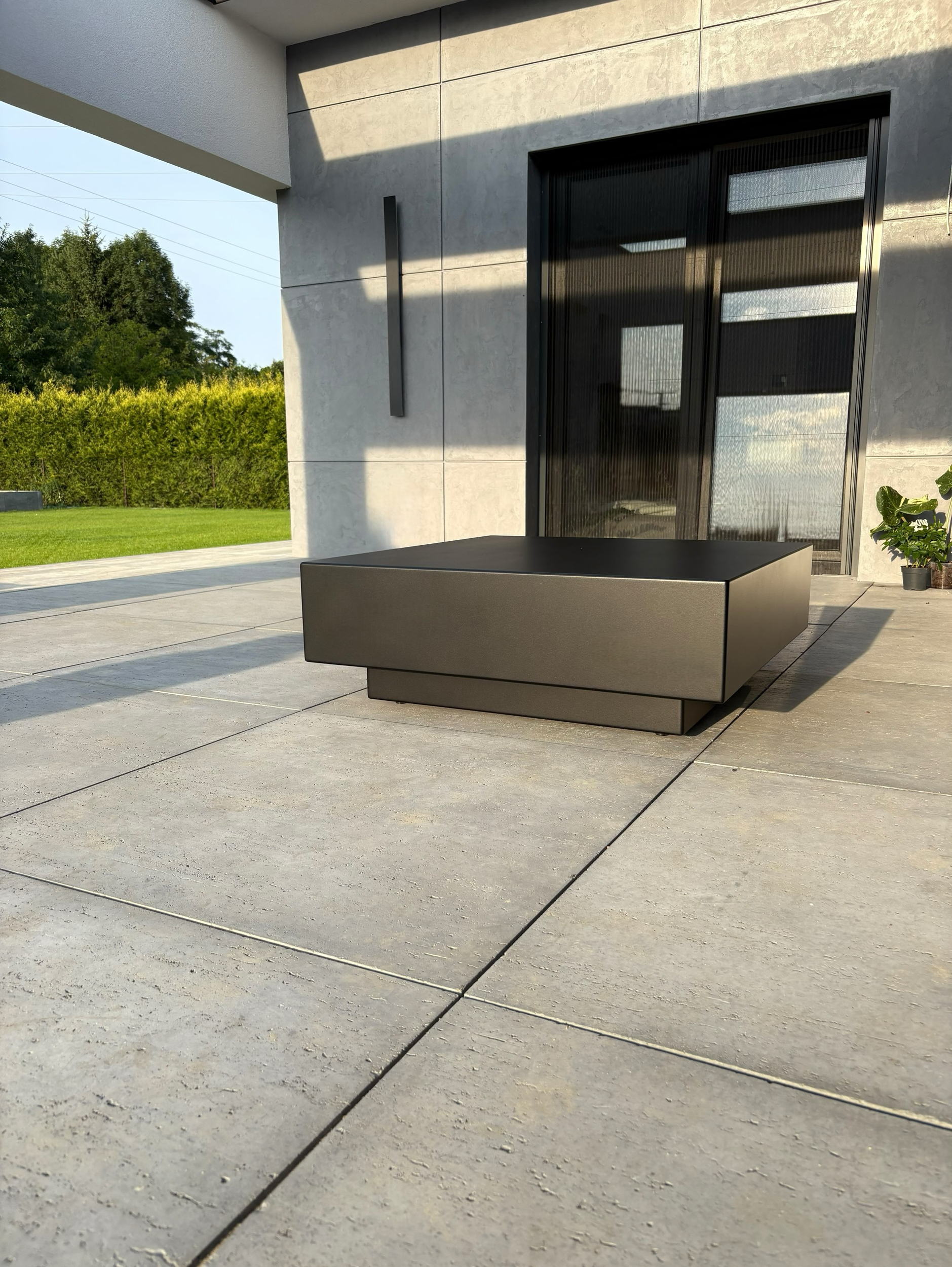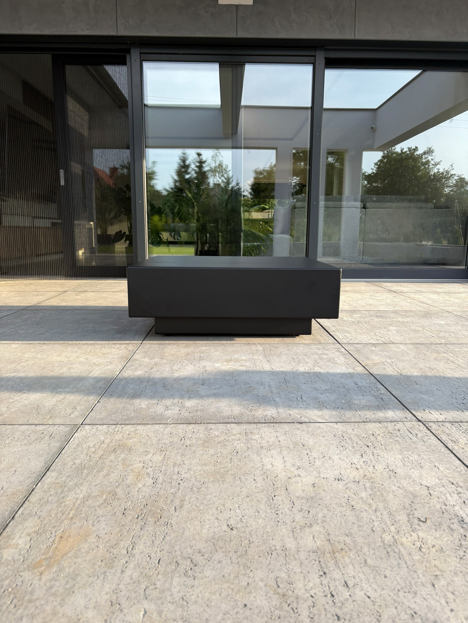 - Nowoczesny stolik typu kostka wykonany z aluminium malowanego proszkowo. Minimalistyczna forma i surowa estetyka sprawiają, że doskonale sprawdza się zarówno we wnętrzach, jak i w przestrzeniach zewnętrznych — na tarasie czy w ogrodzie.