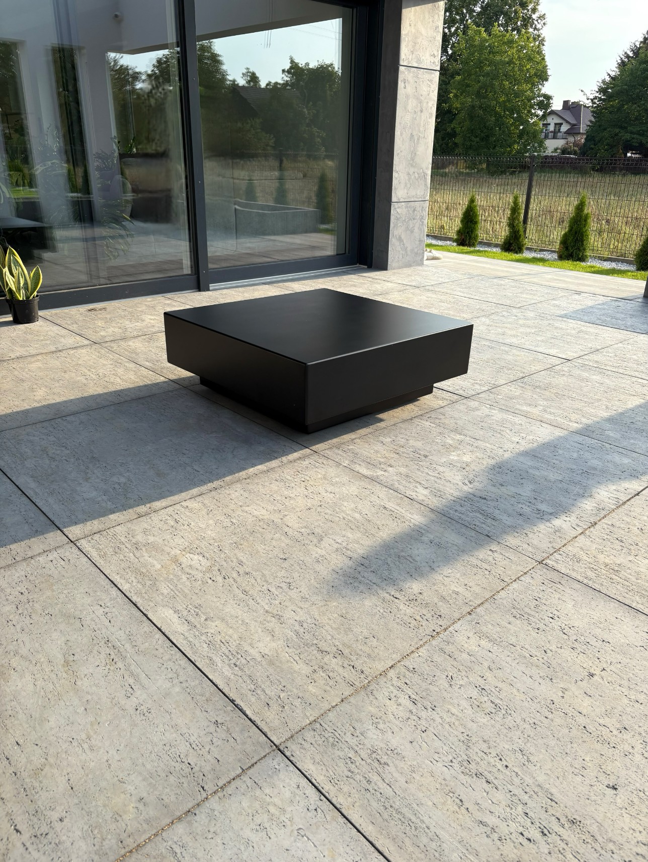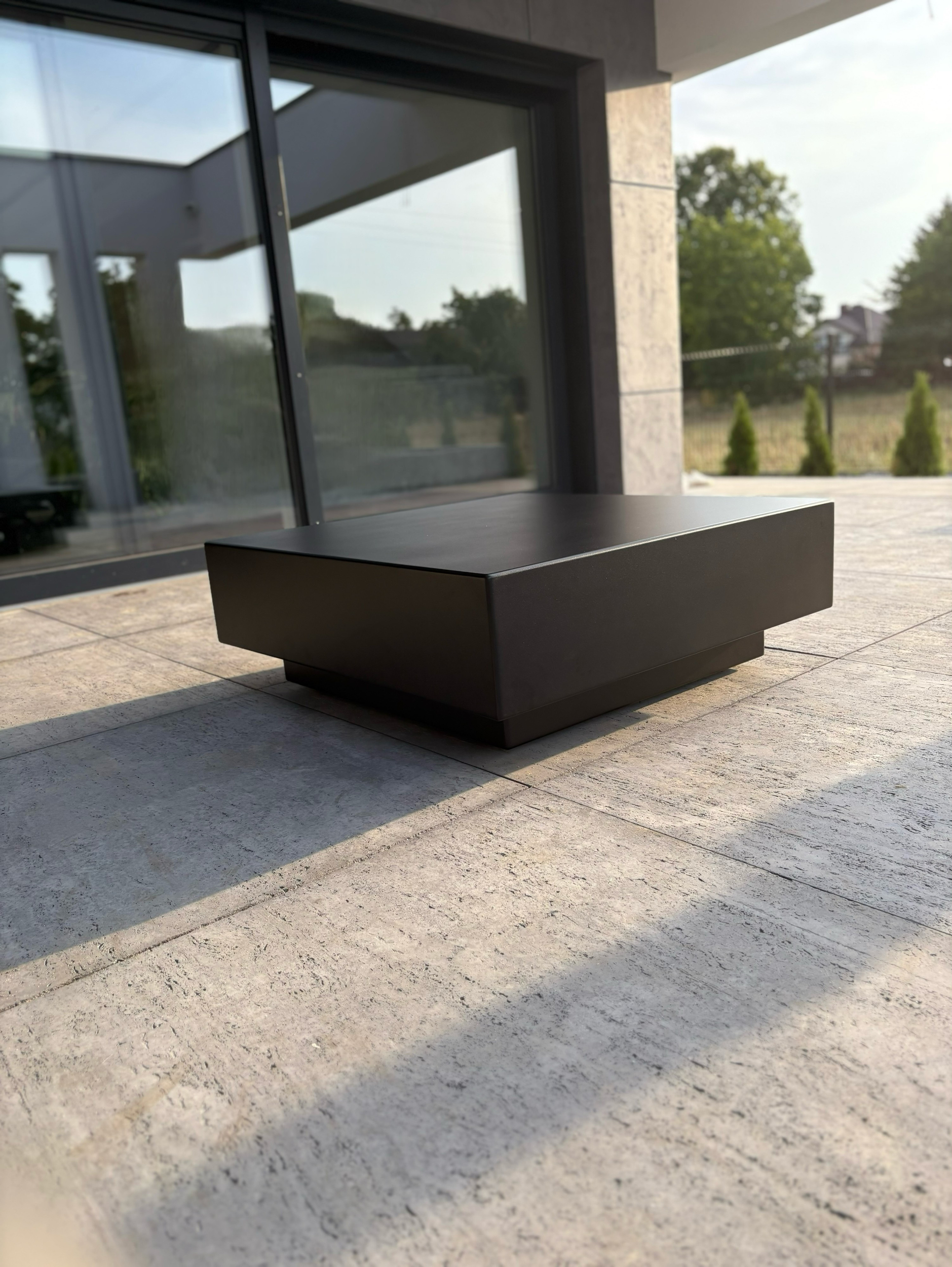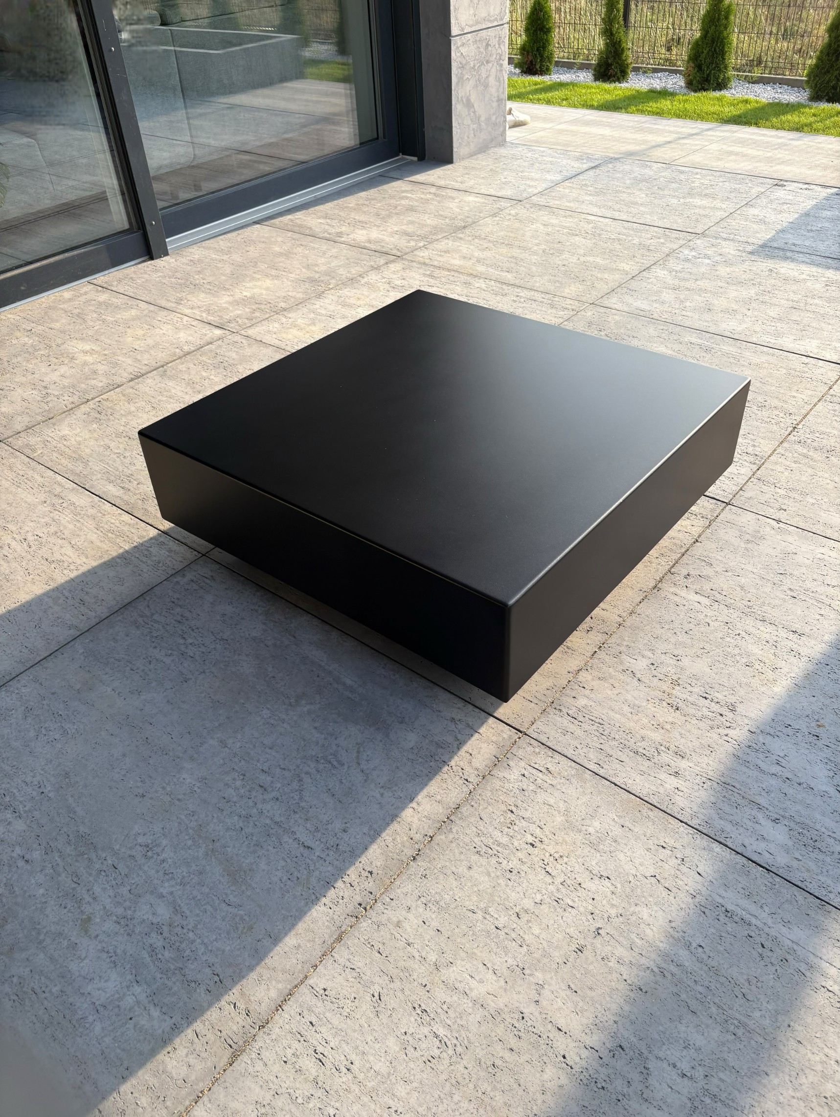 - Nowoczesny stolik typu kostka wykonany z aluminium malowanego proszkowo. Minimalistyczna forma i surowa estetyka sprawiają, że doskonale sprawdza się zarówno we wnętrzach, jak i w przestrzeniach zewnętrznych — na tarasie czy w ogrodzie.