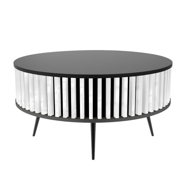 Stolik kawowy okrągły SUNDAY - Czarny blat / Lamele Biel Połysk