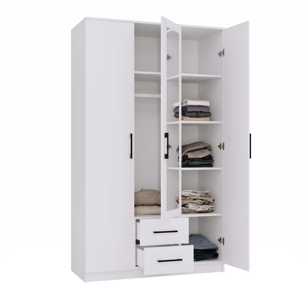 Szafa garderoba z lustrem KLAMBI 120CM - Biel Mat