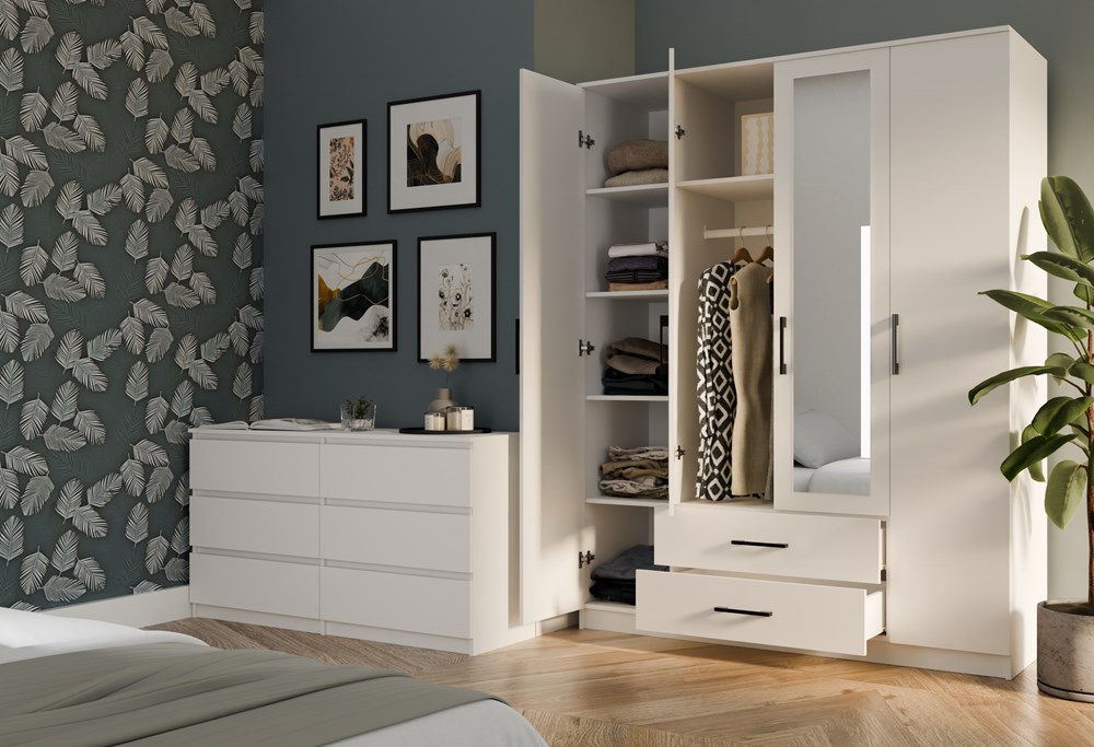 Szafa garderoba z lustrem KLAMBI 160CM - Biel Mat