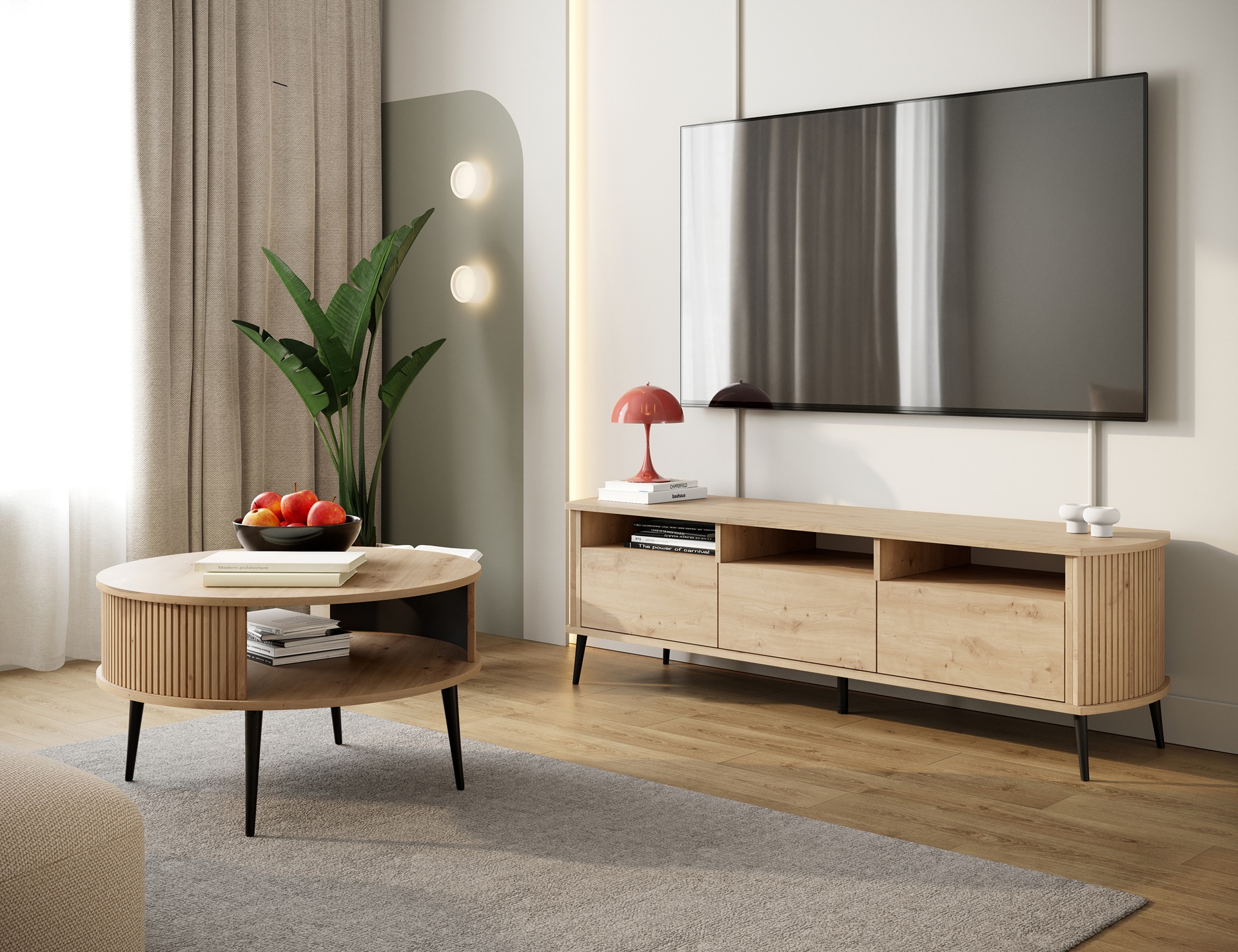 Szafka RTV z lamelami MOONDAY 150cm - Dąb Artisan
