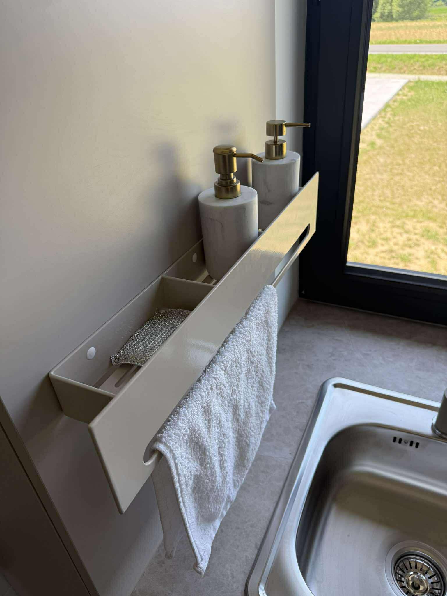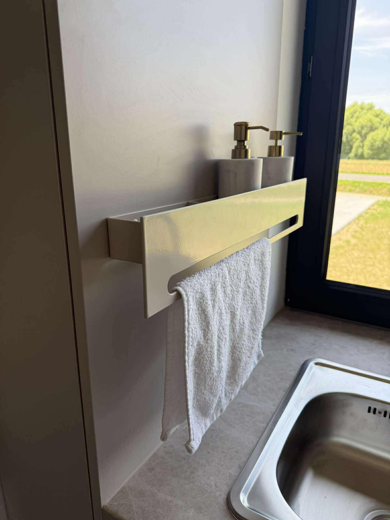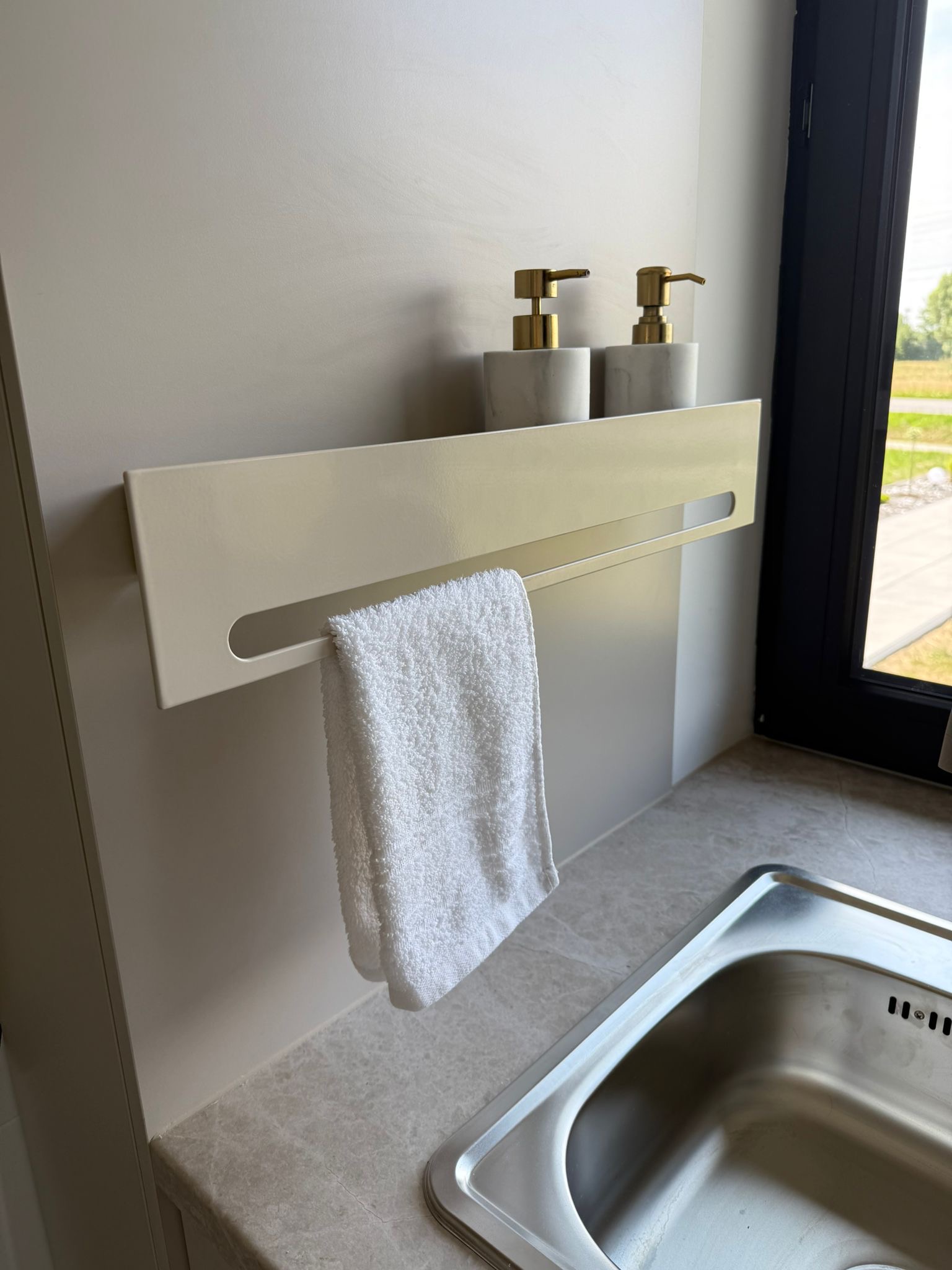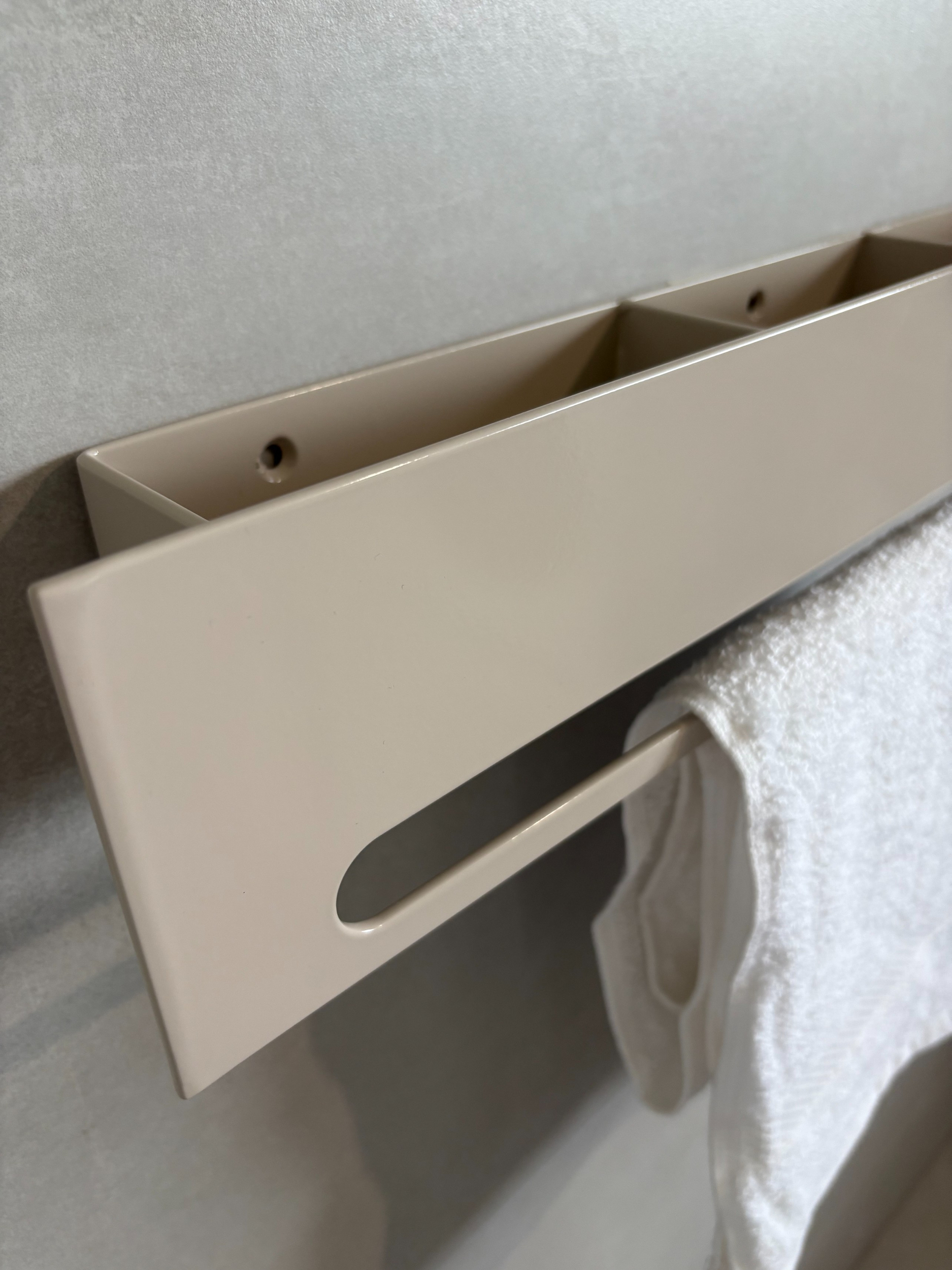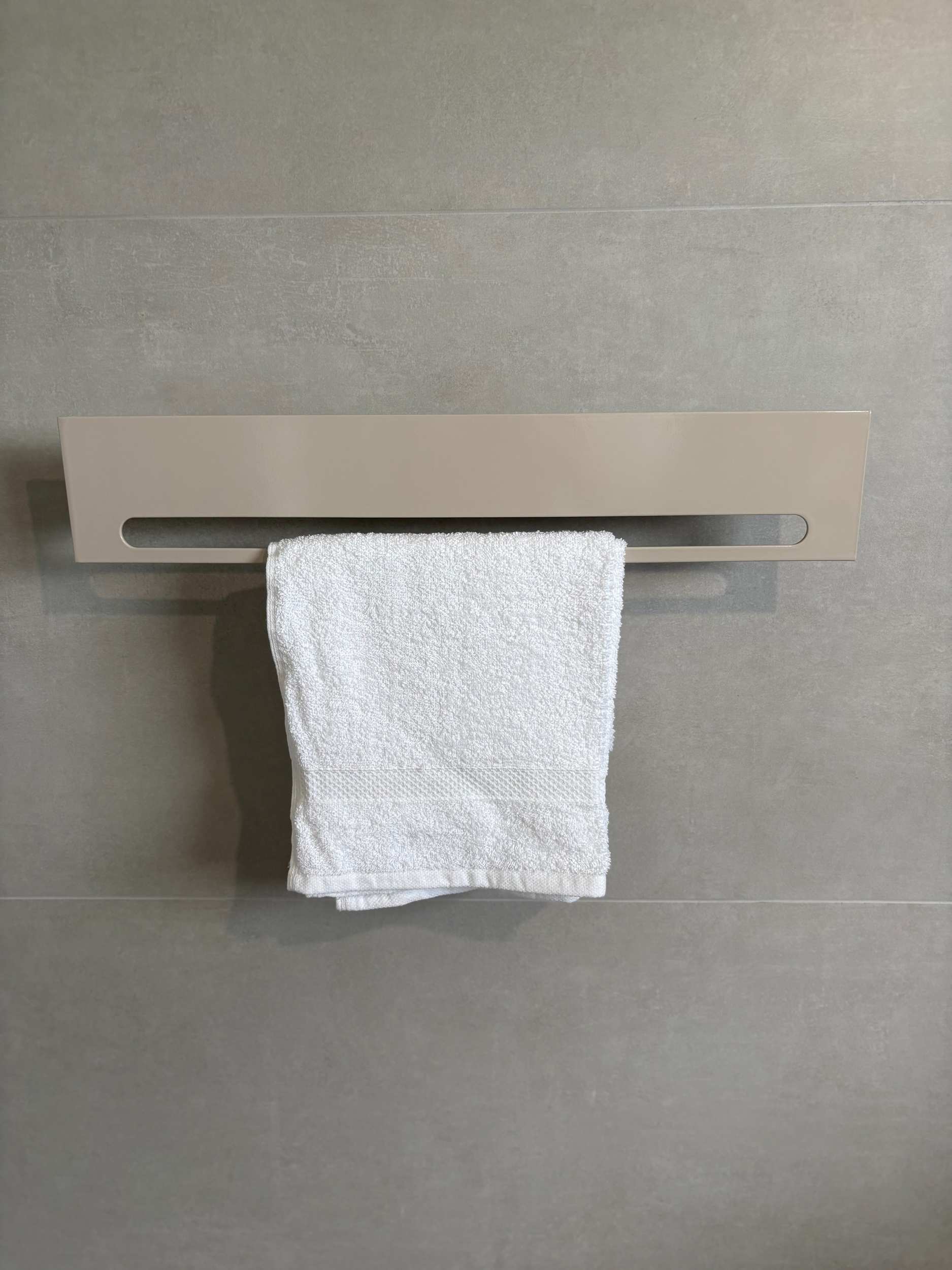 Uchwyt na ręcznik RETTO to elegancka ozdoba łazienki, która łączy funkcjonalność z nowoczesnym designem. Jego konstrukcja umożliwia łatwe powieszenie ręcznika, oraz położenie potrzebnych kosmetyków, jednocześnie zapewniając łatwy dostęp. RETTO stanowi subtelną dekorację łazienki, która wzbogaca wystrój, zachowując pełną praktyczność.