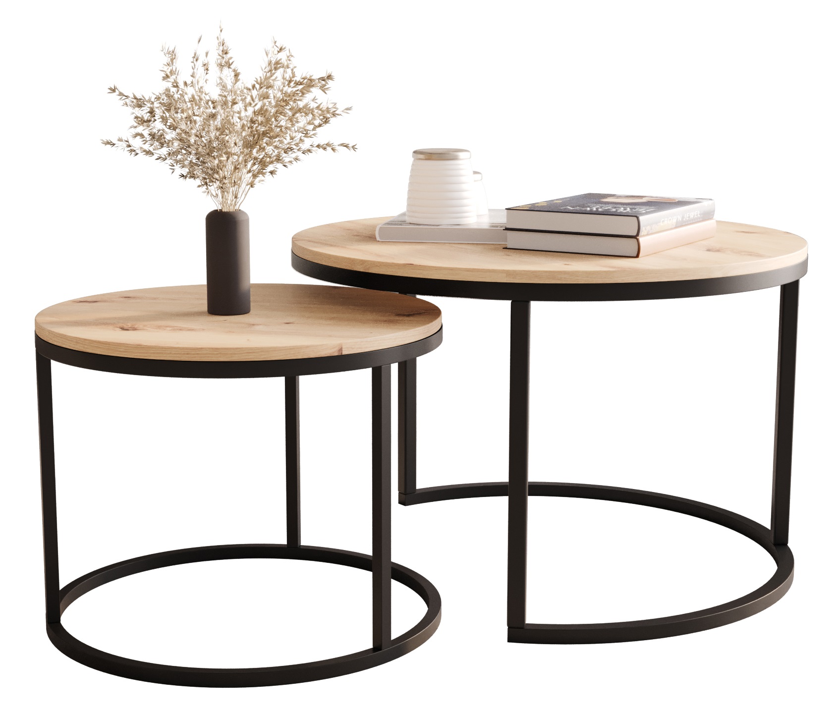 Zestaw dwóch okrągłych stolików MJU - Dąb Artisan