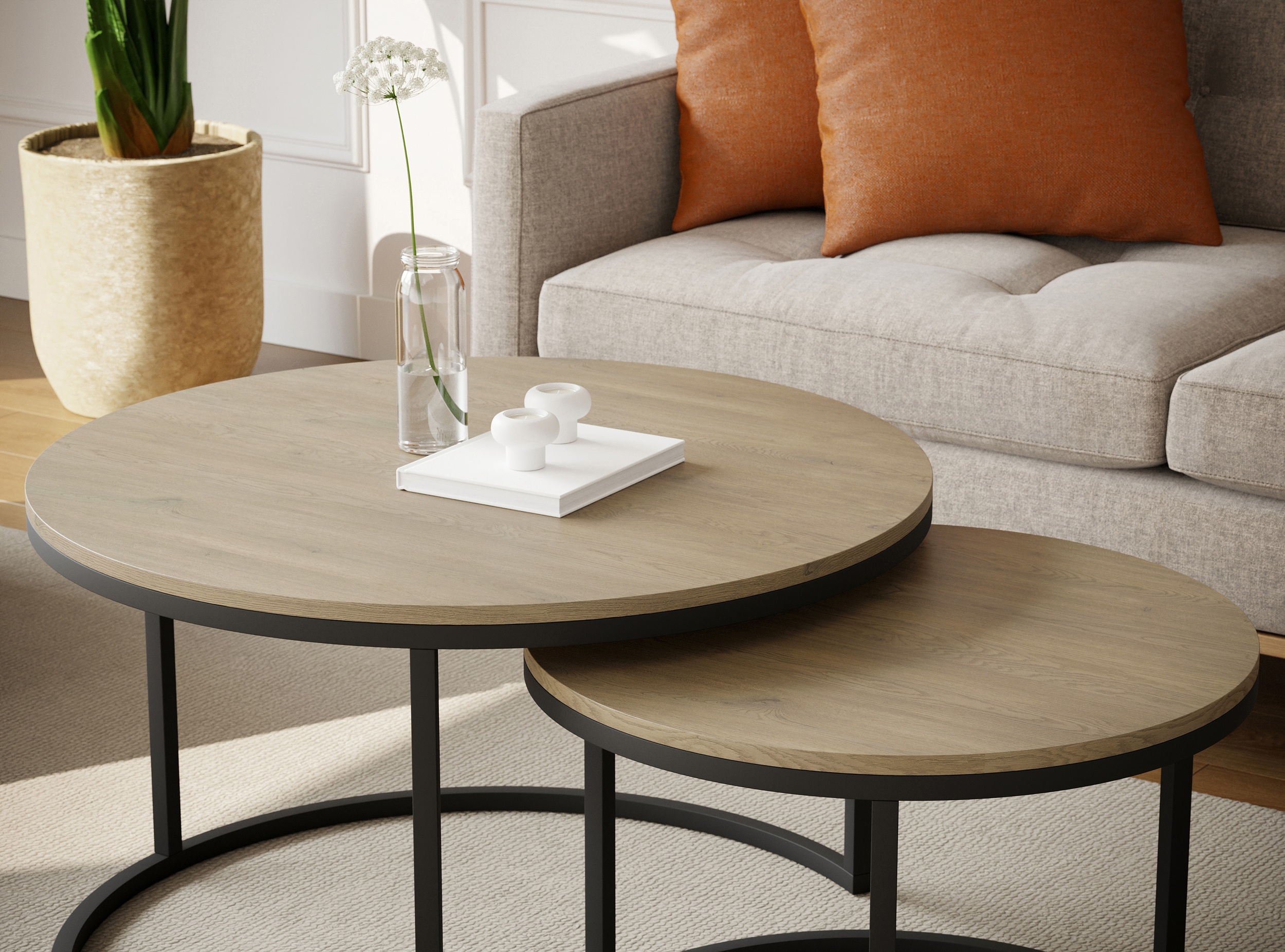 Zestaw dwóch okrągłych stolików MJU - Dąb Cremona